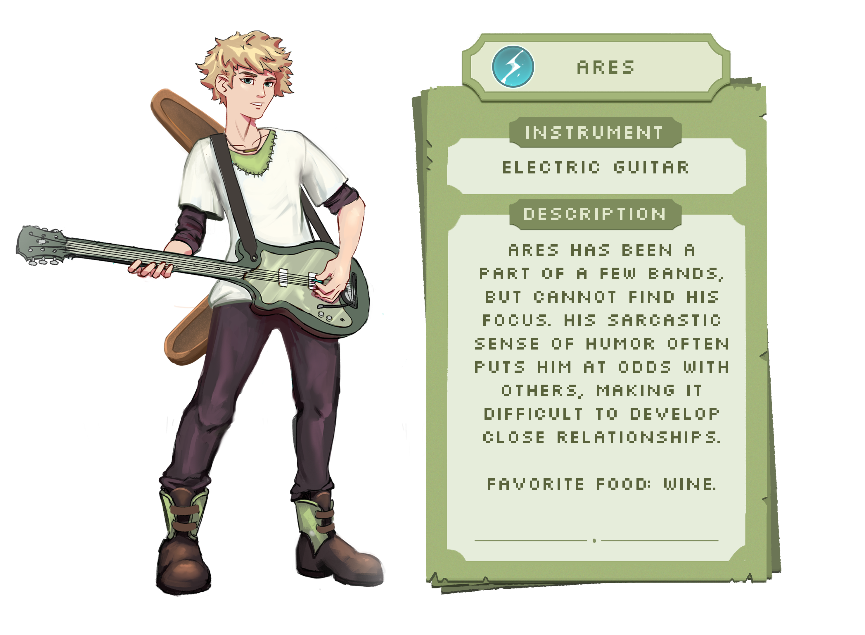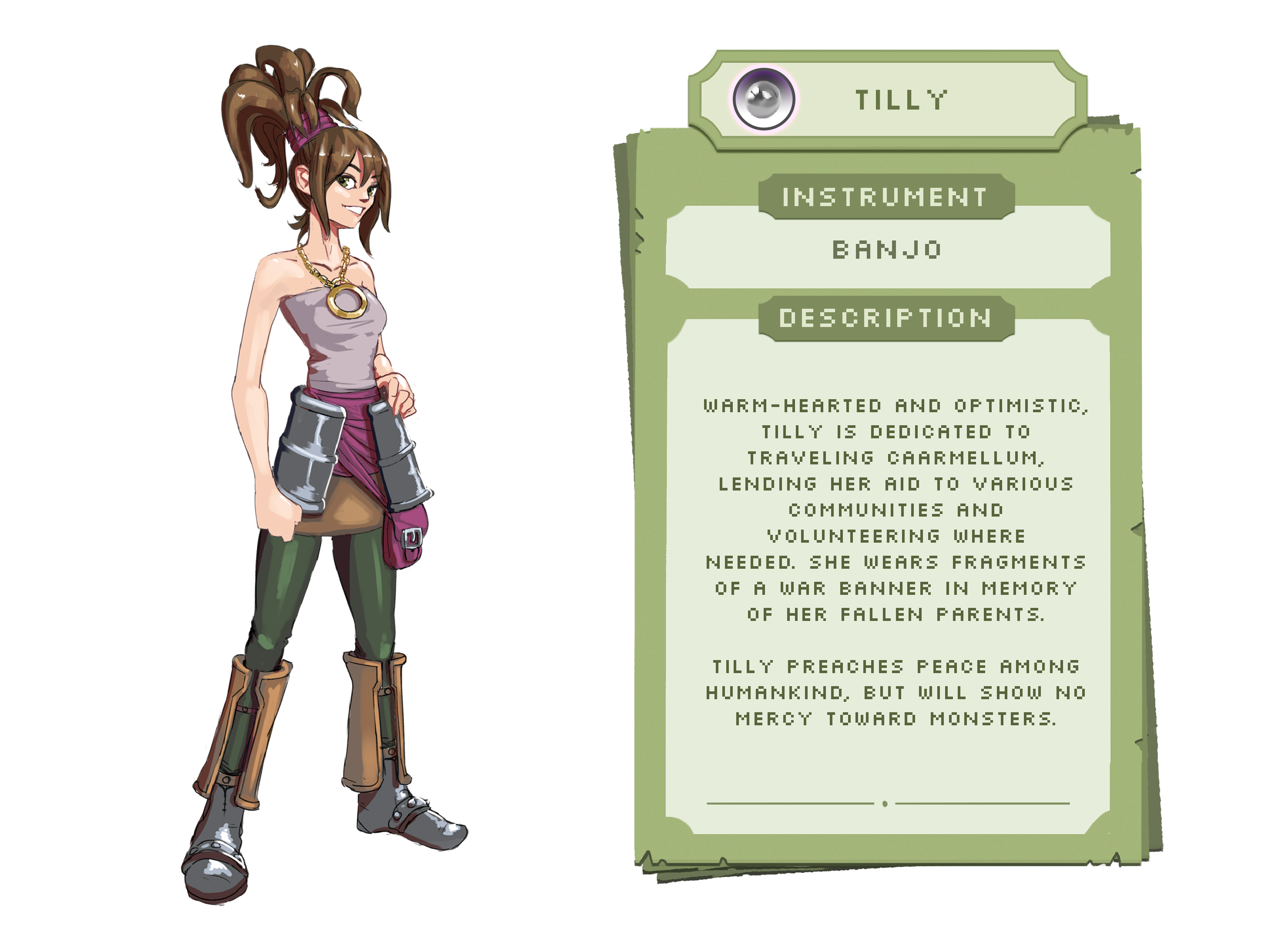 Set in the world of Caarmellum, where music is magic, the player controls a young man named Ares. Ares has set out to make a new band after discovering a former bandmate has a role in a disastrous event. You come across all mater of musician while on your journey, showing the variance and power that is music.