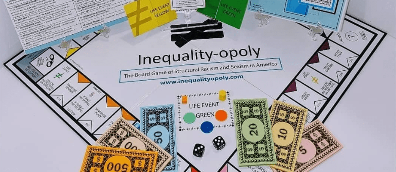 Inequality-opoly is a board game using a creative and interactive means to meet an important mission. Developed by a teacher/board game director, Inequality-opoly is a property game that explores perspectives and their impact on someone’s experience.