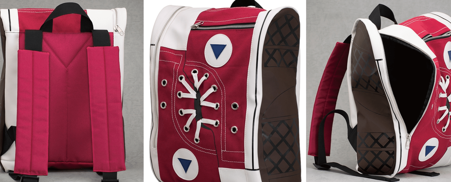 Available from Goodsmile Company Japan, the backpack s made to look like a pair of canvas shoes, its unique and fun style is instantly recognizable.