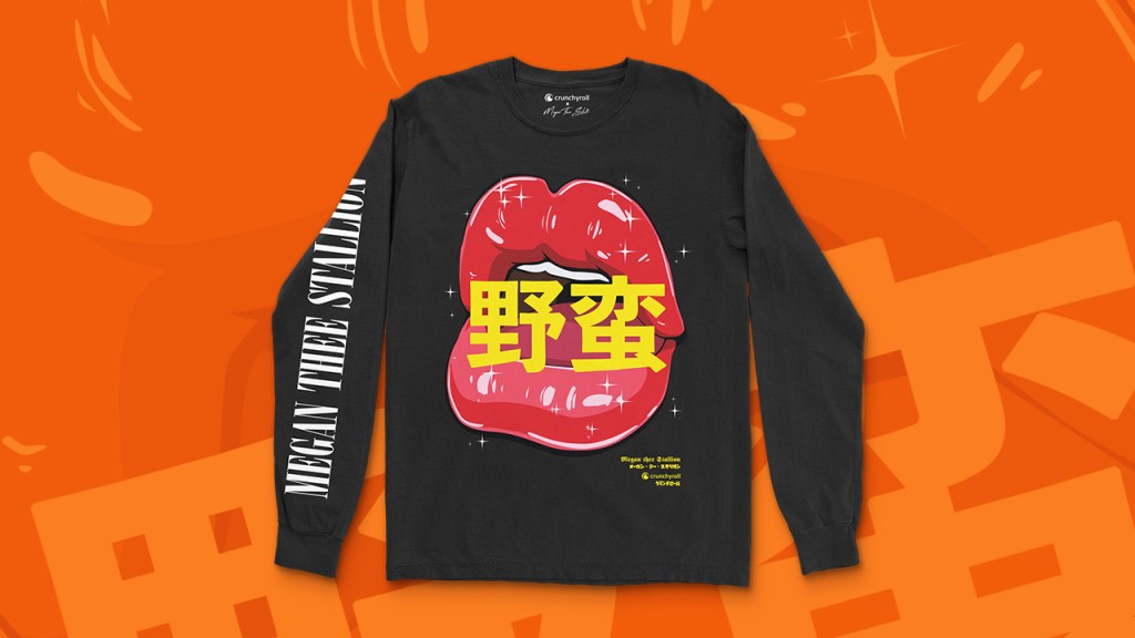 The Crunchyroll Loves Megan Thee Stallion collection is a streetwear line themed after the fan-favorite singer and anime fan. Each piece captures the energy of Megan’s music video, Savage, in a stylized anime form.
