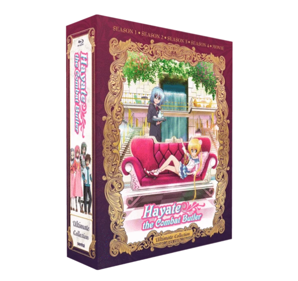 Hayate the Combat Butler Ultimate Collection comes on several Blu-ray discs and includes seasons 1-4 (over 100 episodes), the movie Heaven is a Place on Earth, and clean versions of the series opening and closing animations.