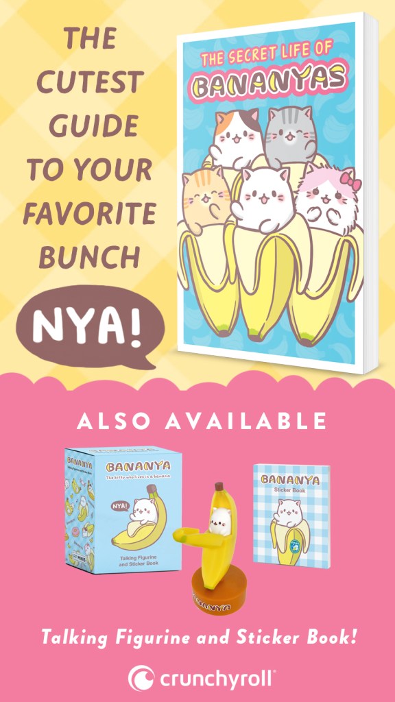 The Secret Life of Bananyas is available for pre-order now from the Crunchyroll Store as well as Amazon, Apple Books, Barnes & Noble, Google Play, eBooks, and bookstores all around the U.S. The Bananya Cat Mini Kit is also available for pre-order from the Crunchyroll Store, Amazon, Target, Walmart, and major bookstores.