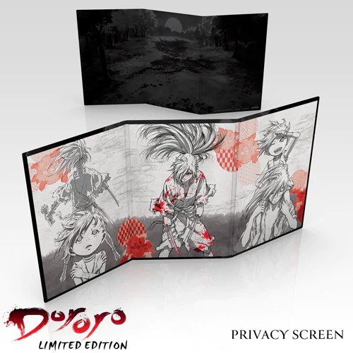 The Dororo Premium Box Set includes all 24 episodes of the series’, textless versions of the opening & closing animations, Japanese promos, a 40-page booklet, privacy screen, and 12 double-sided art cards, all packaged in an absolutely gorgeous collector’s box & extras box.