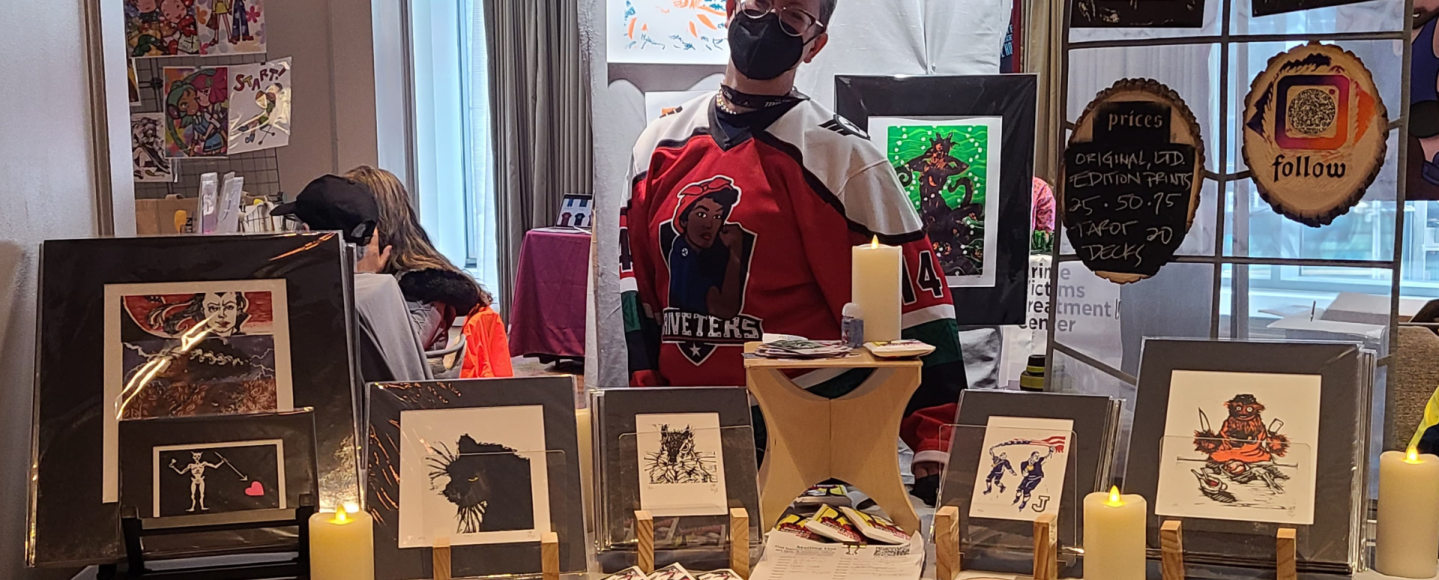 Connaire’s creations include limited edition zines and woodcut prints, all carved and inked, and printed by hand.