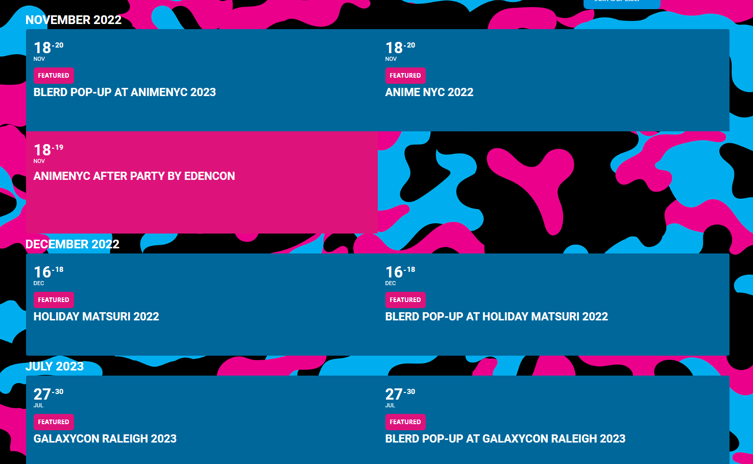 Make sure to check out their events directory to see where Blerd will be next. The next event you can see them at is Holiday Matsuri this December in Orlando, Florida.