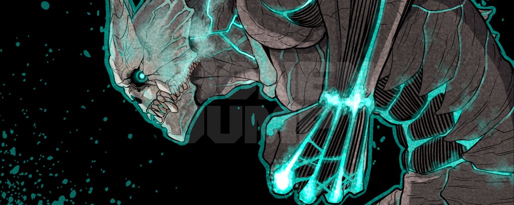 Kaiju No. 8 is written and illustrated by Naoya Matsumoto and published in Shueisha’s Shōnen Jump+ imprint. The series is set in a Japan regularly under siege by giant monsters called Kaiju, it has been a lifelong dream of childhood friends Kafka Hibino and Mina Ashiro to join the Japanese Defense Force and fight the monsters. But when Kafka fails the test and is forced to get a job cleaning up after monster attacks, a chance encounter gives him the ability to turn into a kaiju.